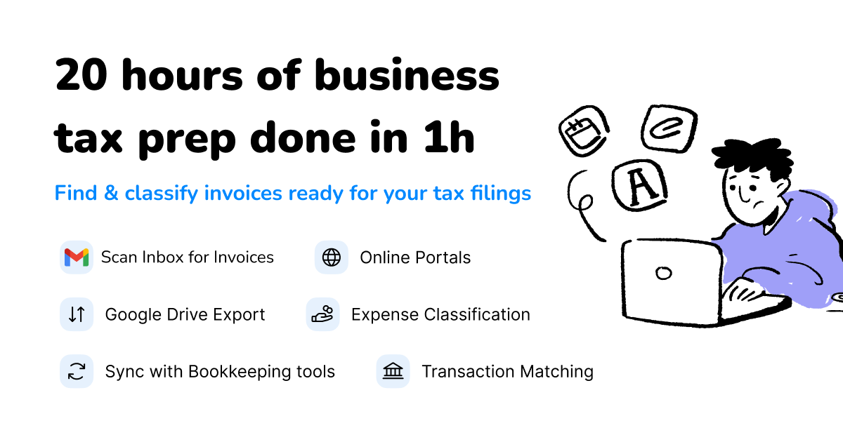 - Taxing.app automatically scans your entire Gmail inbox to find and extract invoice files without you having to manually search through thousands of emails