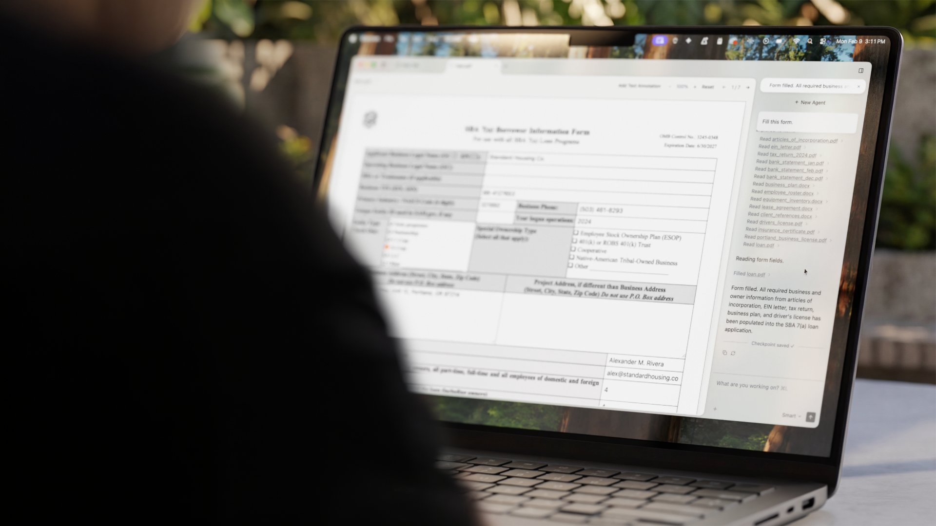 - Describe what you need filled in plain language and OpenInterpreter reads your Word or PDF forms to understand which fields need completion