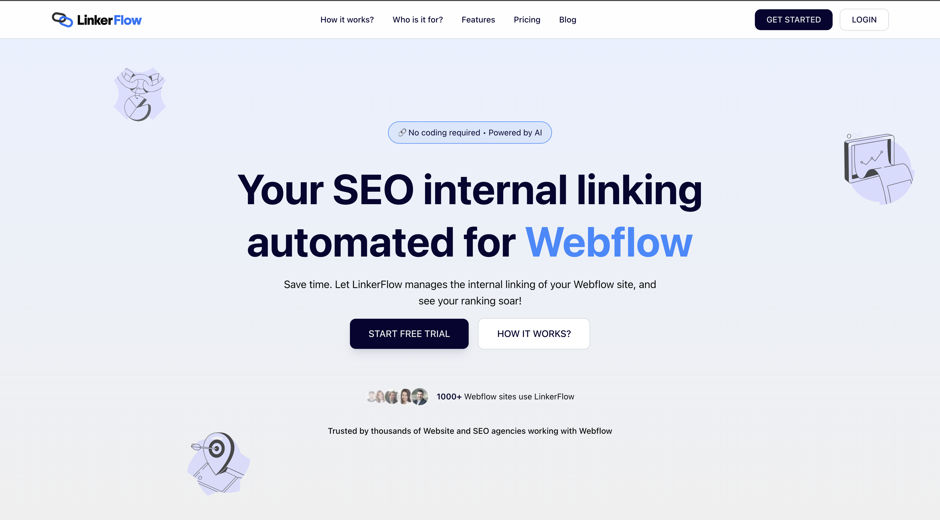- Connect your Webflow site to LinkerFlow and let it scan through all your pages to find linking opportunities you'd miss doing it by hand