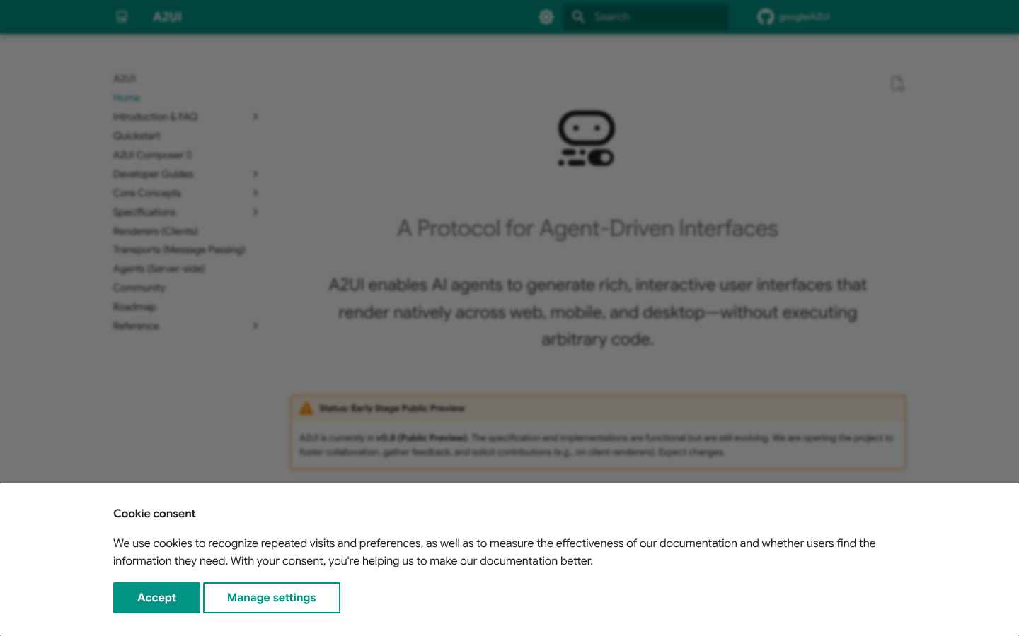 A2UI is an open protocol that lets AI agents stream secure, declarative UI descriptions that render natively in your existing frameworks. It enables agent-driven interfaces across web, mobile, and desktop without executing untrusted code.