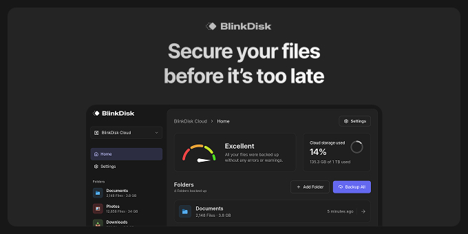 - BlinkDisk runs right on your computer so you don't need any technical setup or cloud accounts to start backing up your files