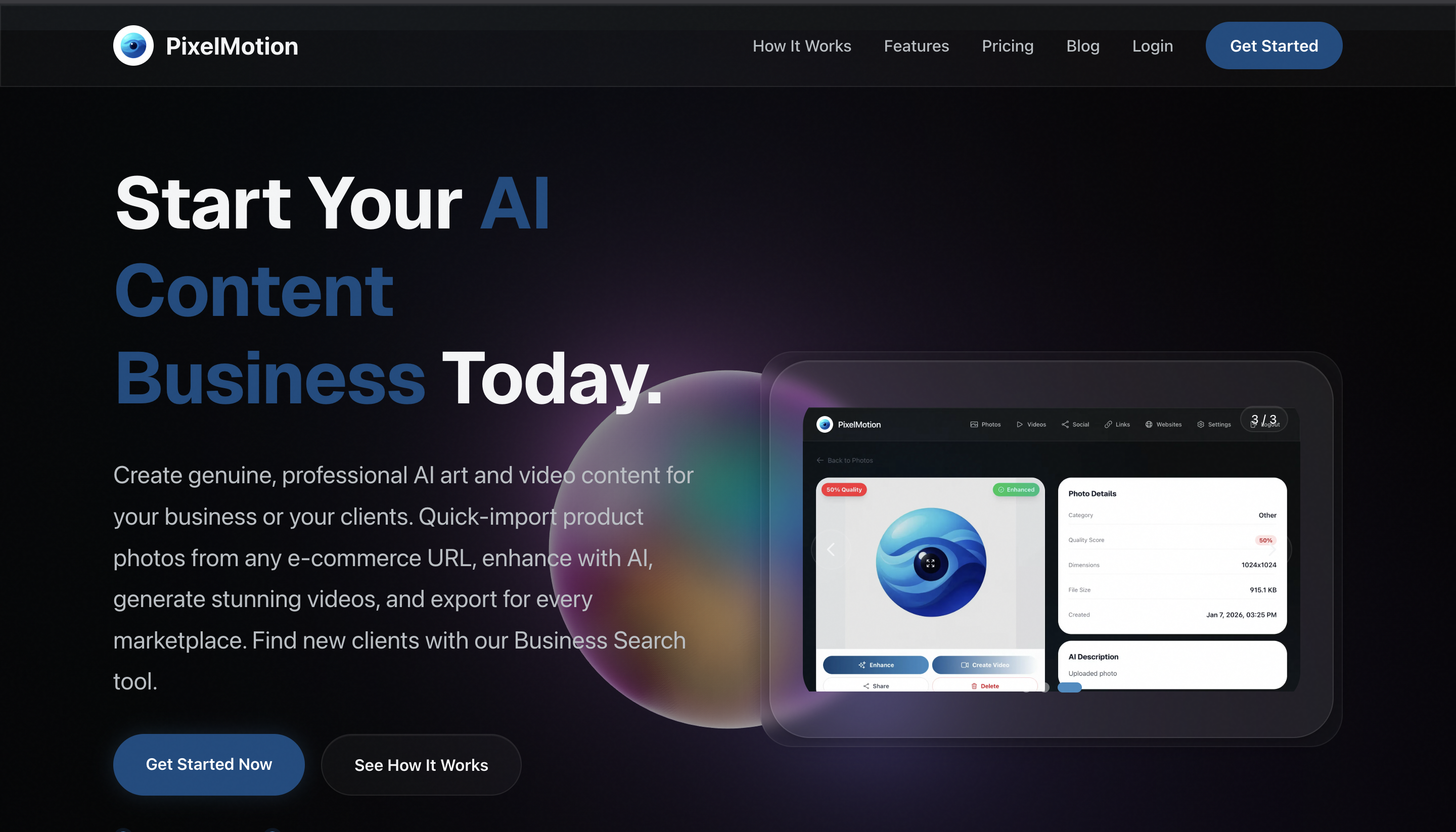 PixelMotion transforms any product photo into professional marketing content using AI. Upload a phone photo, enhance it with 9 AI models, then generate stunning product videos with 11 engines including Sora 2, Veo 3.1, and Runway Gen-3. Post directly to YouTube and TikTok. Built for Shopify sellers, Amazon FBA, DTC brands, and agencies who need studio-quality visuals without the studio.