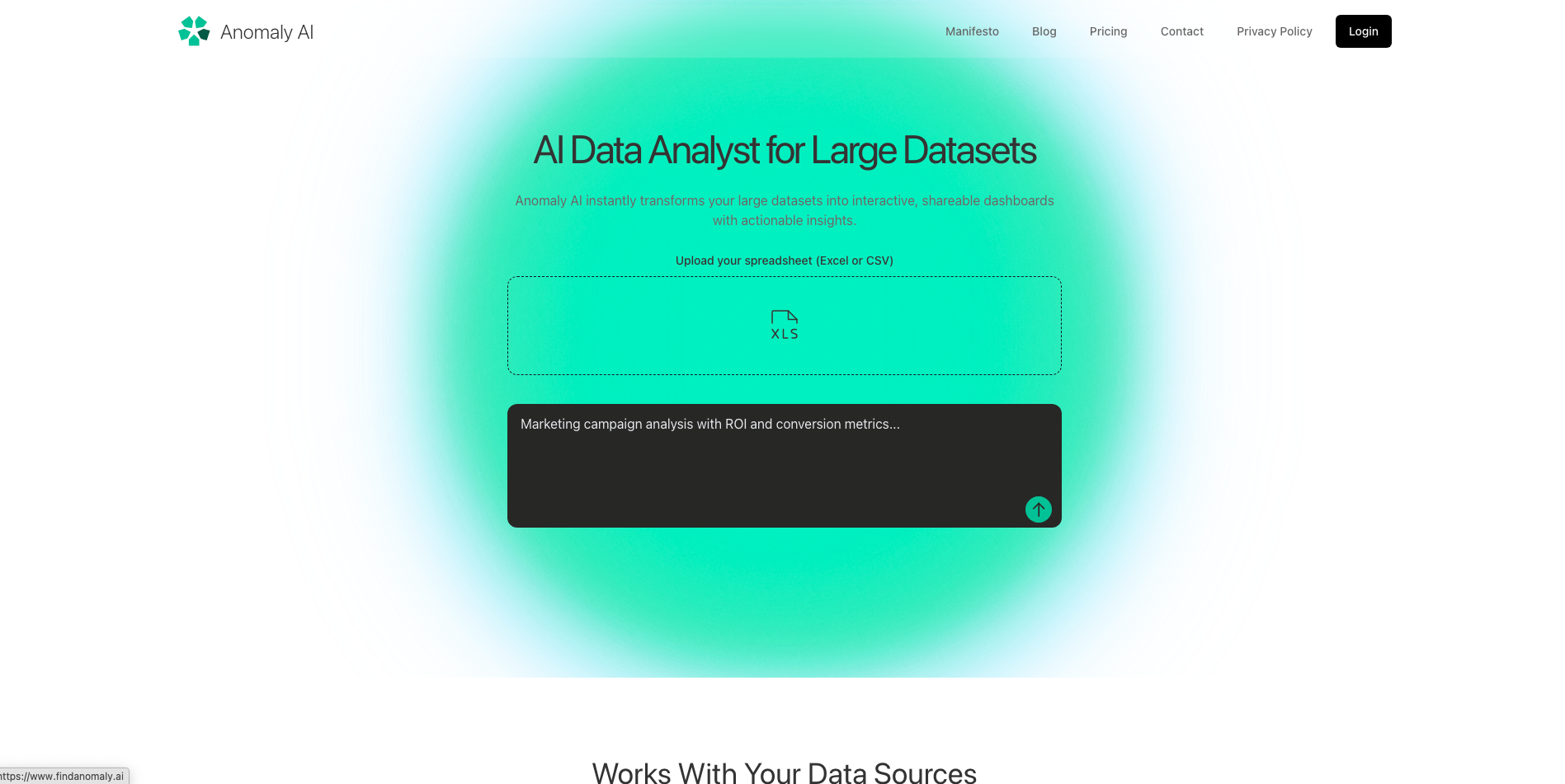 - Connect your big data sources directly to Anomaly AI and watch it automatically convert complex datasets into clean, visual dashboards that your team can easily understand and share