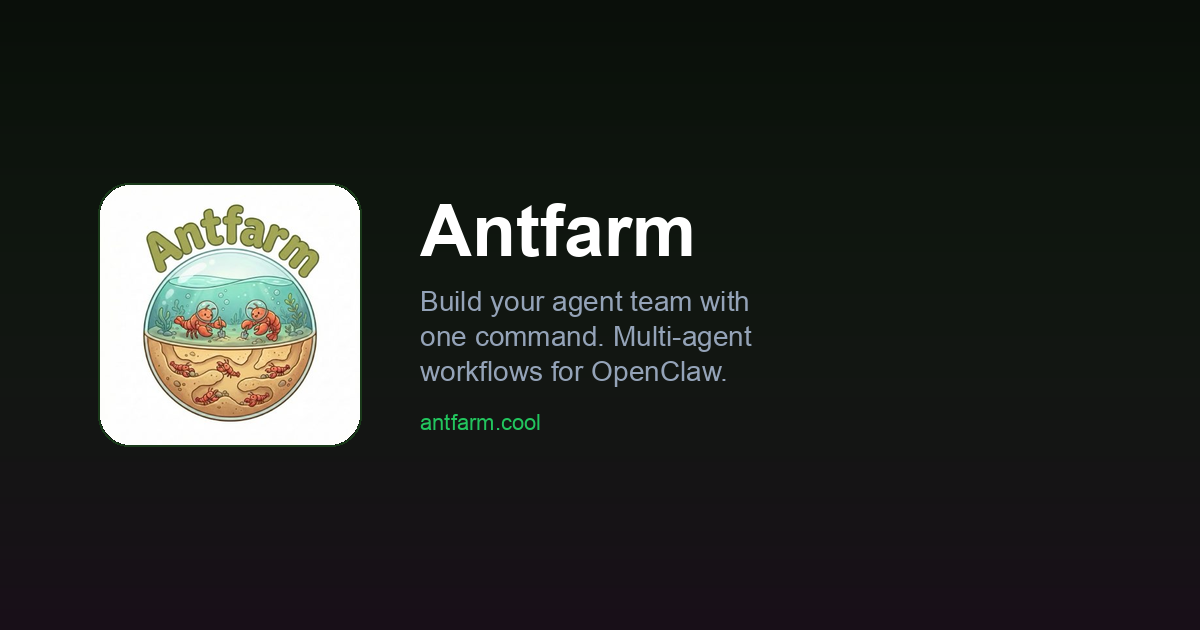 Antfarm lets you define specialized AI agent teams for OpenClaw in YAML and run deterministic, multi-step workflows from a single install. It turns feature requests, bug reports, and security scans into verified, tested pull requests with automatic retries and zero extra infrastructure.