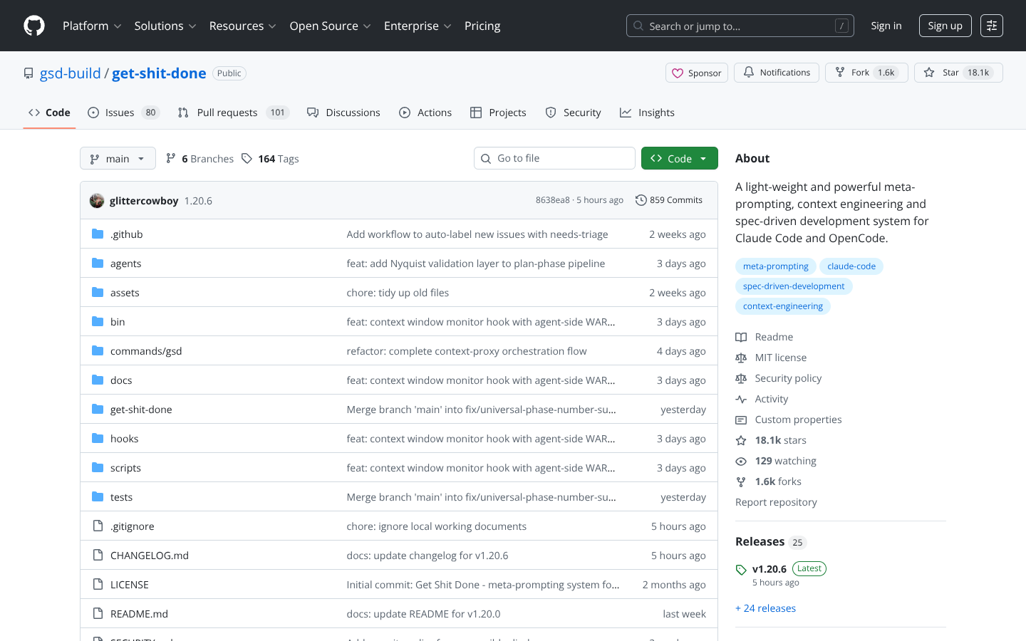 Get Shit Done is a spec-driven workflow that powers Claude Code, OpenCode, and Gemini CLI with robust context engineering. It eliminates context rot and vibecoding, turning your high-level ideas into consistent, production-ready code without heavyweight project management overhead.