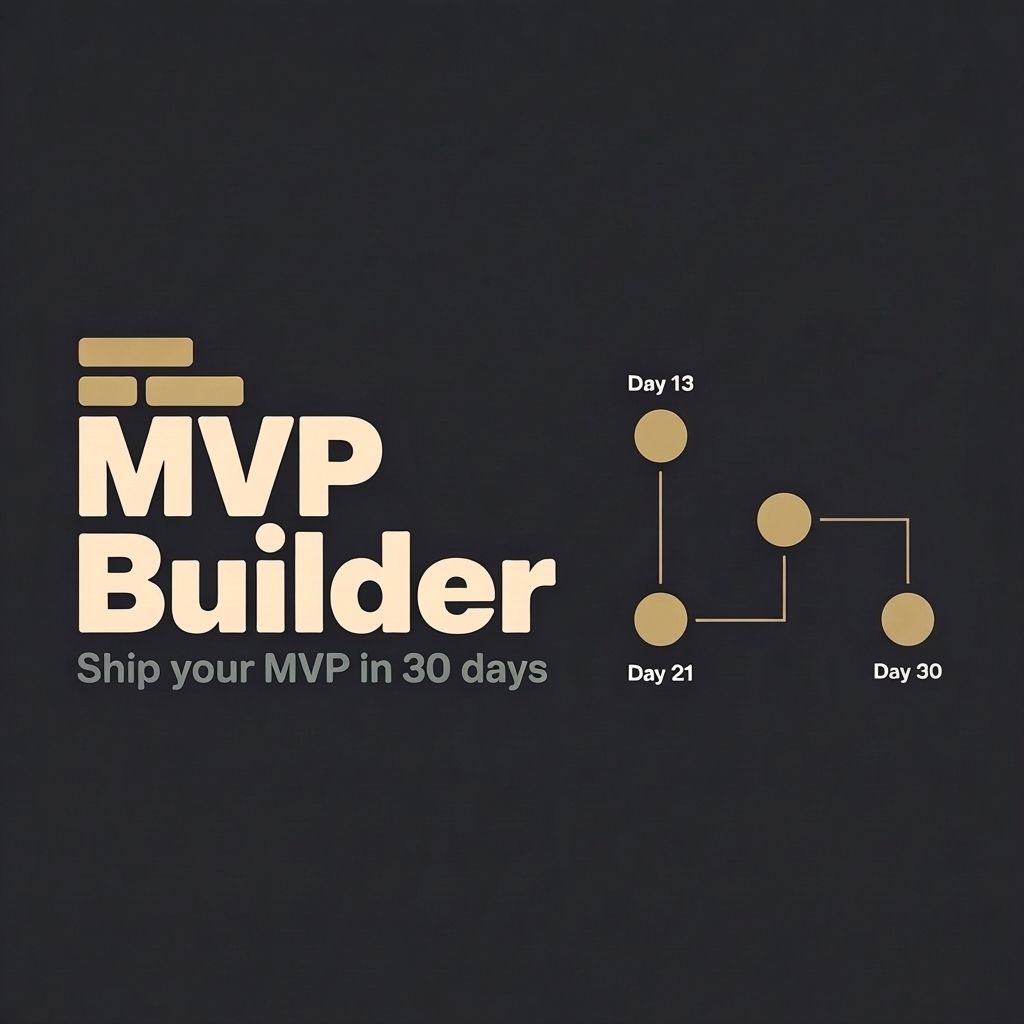 MVP Builder is a structured 30-day sprint system for solo builders who keep starting projects but never finish them. You get a daily AI prompt tailored to your project, clear milestones, and an external accountability checkpoint you can't quietly move. Three tracks: Bronze (13 days), Silver (21 days), Gold (30 days). No credit card. You need an idea and 30–45 minutes a day.