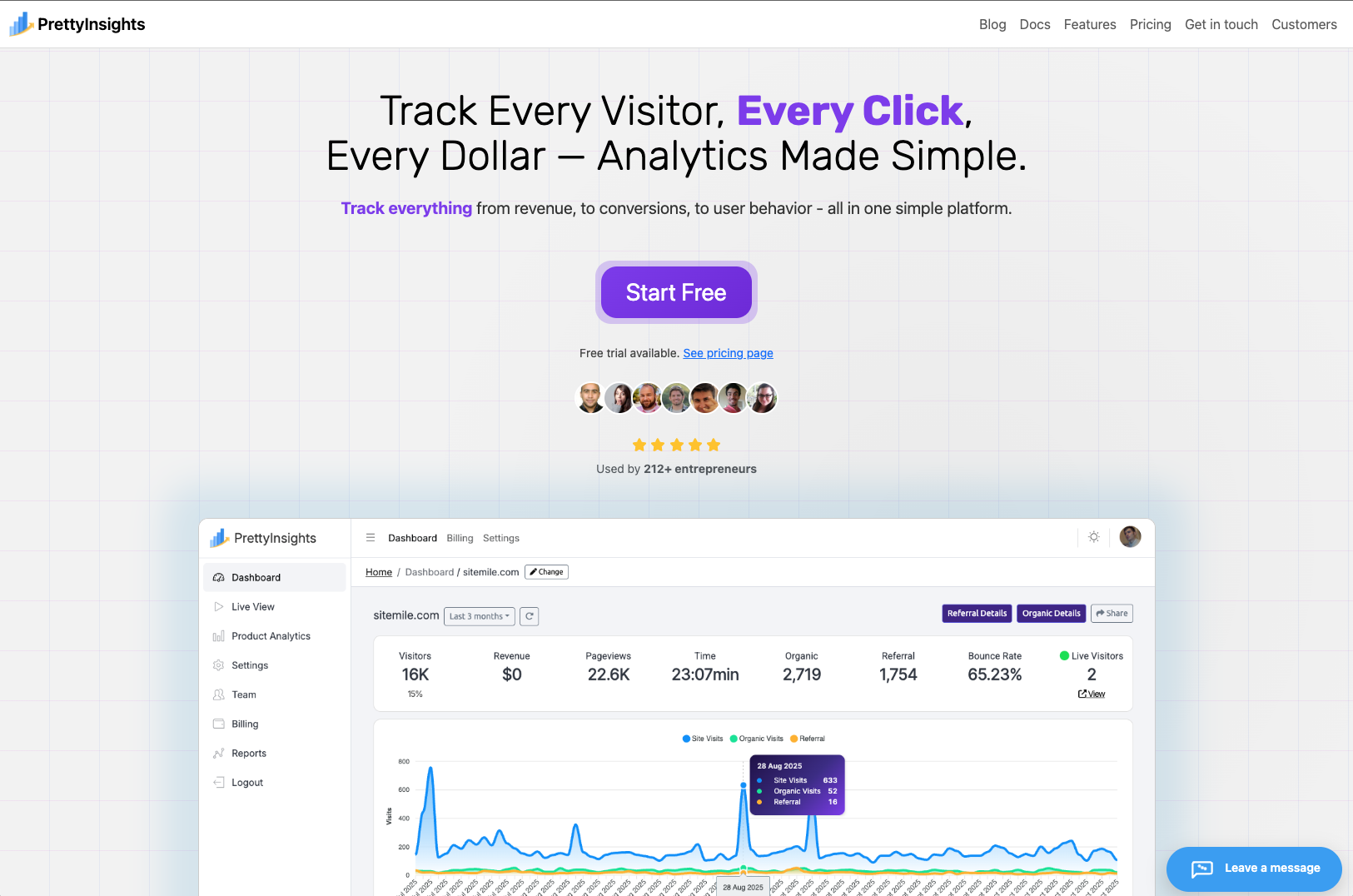 PrettyInsights is a privacy friendly web and product analytics platform that shows you exactly how visitors and customers behave. Track traffic, events, funnels and revenue without creepy tracking or complicated dashboards. See what channels actually convert, fix broken journeys and ship better features faster. Ideal for SaaS, agencies and online businesses that want clear insights, clean reports and simple pricing instead of Google Analytics chaos, all in one lightweight tool.