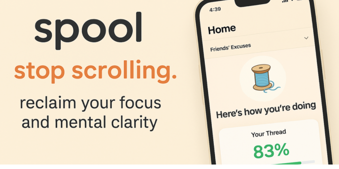 Spool is a iOS mobile screentime control app that forces you to provide an out-loud, spoken reason as to why you want to use an app you chose to block access to. Spool applies CBT techniques to curb screentime addiction at its root with accountability techniques & AI insights into your scrolling triggers.