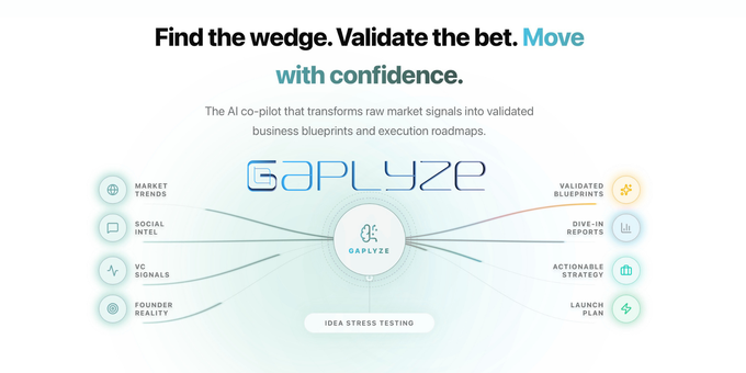 Gaplyze is your AI co-pilot that transforms raw market signals into validated business blueprints and execution roadmaps. It ingests raw market signals, filters them through your reality, and synthesizes comprehensive execution data and action-ready plan. Whether you're exploring a new market or validating an existing idea, Gaplyze adapts to your workflow.