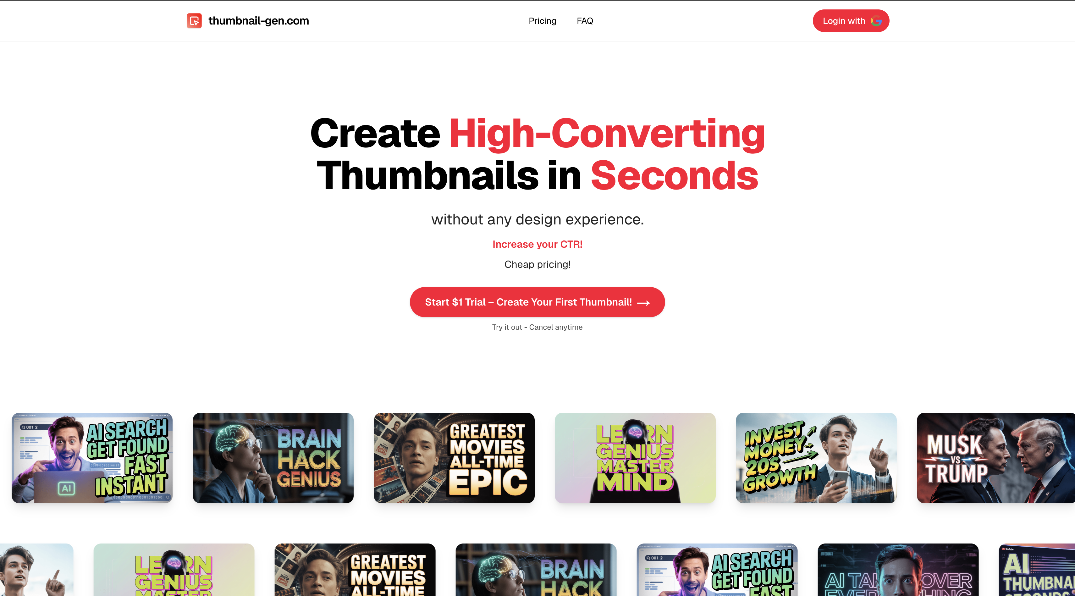 Create high-converting YouTube thumbnails in seconds with the help of AI. No design experience needed! Increase your CTR with our affordable pricing plans.