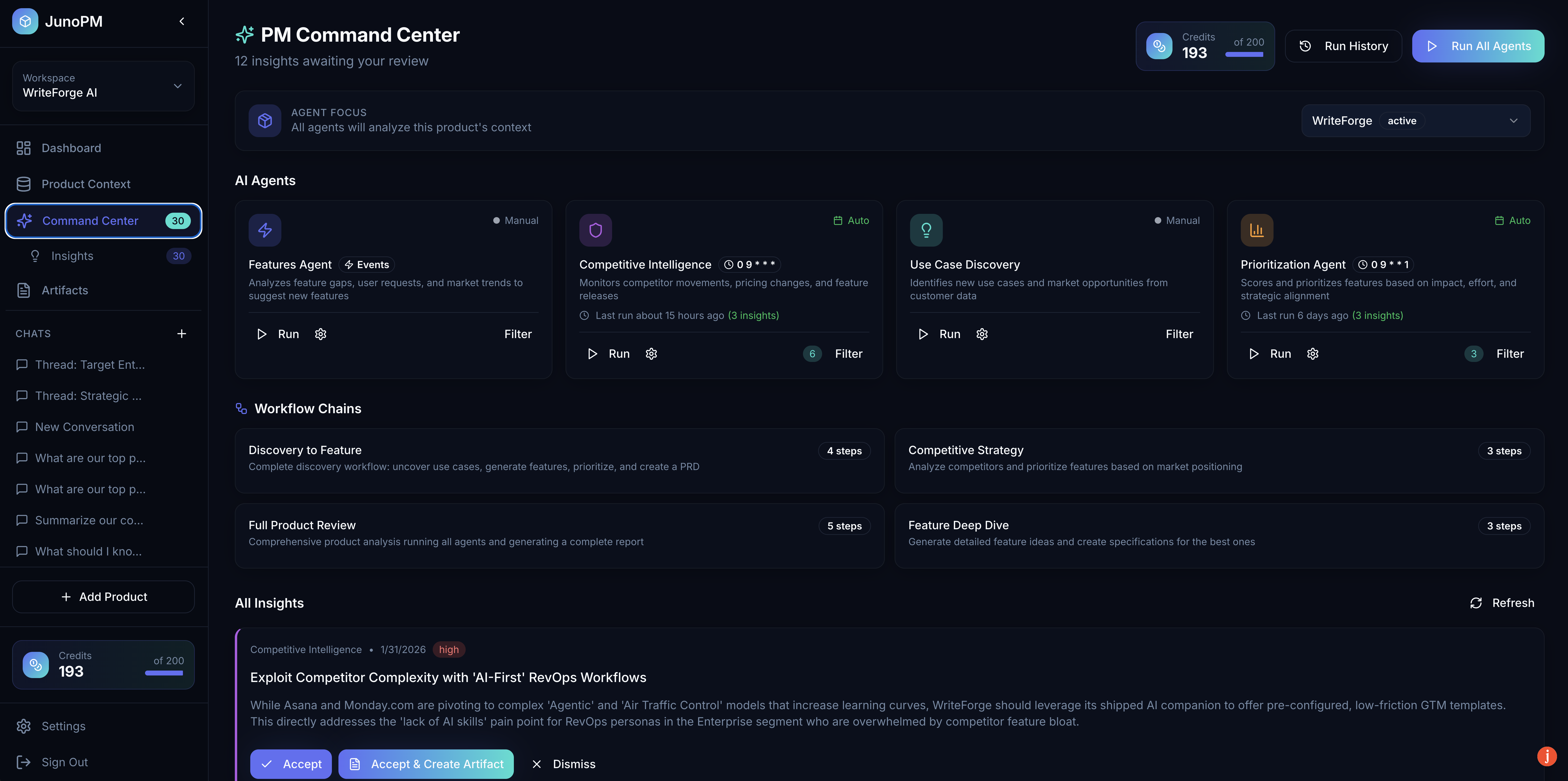 - The platform guides you through proper user research and competitive analysis workflows that fit seamlessly into fast-paced AI development cycles