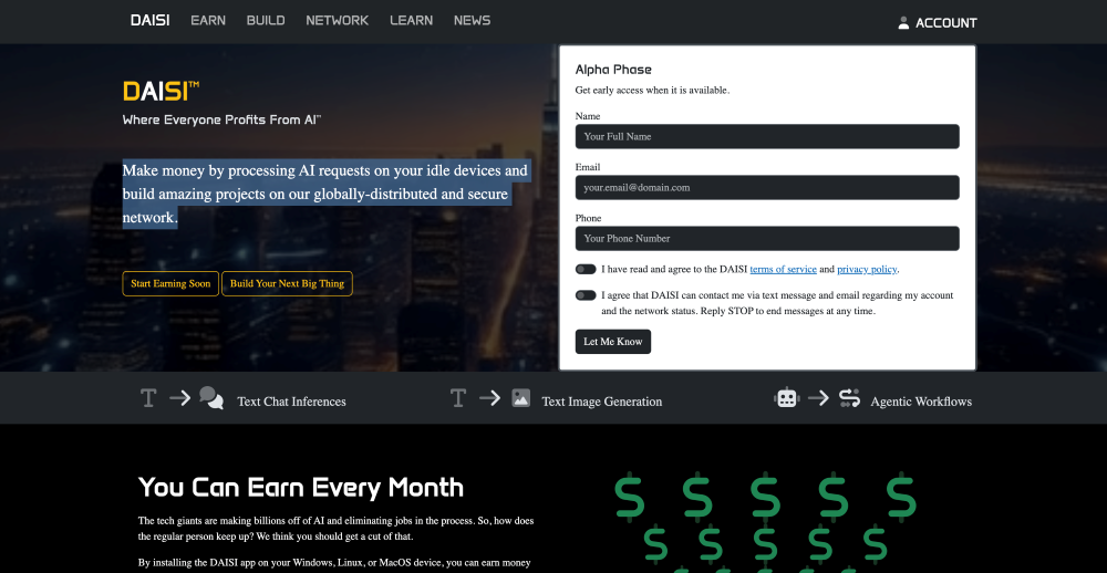 - Turn your unused computer or phone into a money-making machine by letting Daisy AI use the extra processing power while you sleep or work