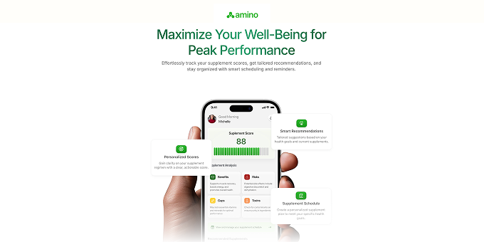 - Point your phone camera at any supplement bottle and Amino instantly reads the entire ingredient list without you having to squint at tiny text or research each component manually