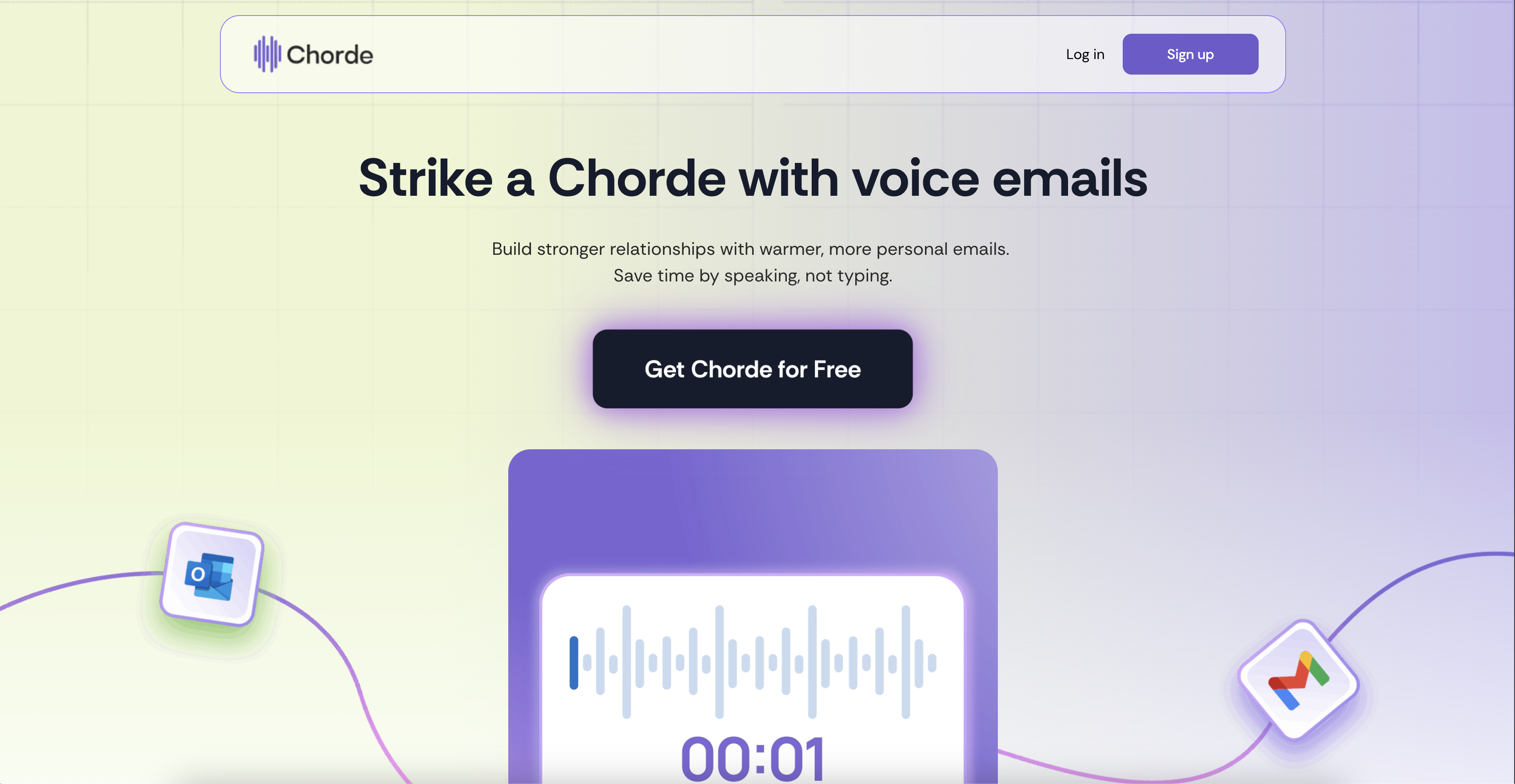 Send warmer, faster emails with Chorde—record your voice, skip the typing, and connect in one click.