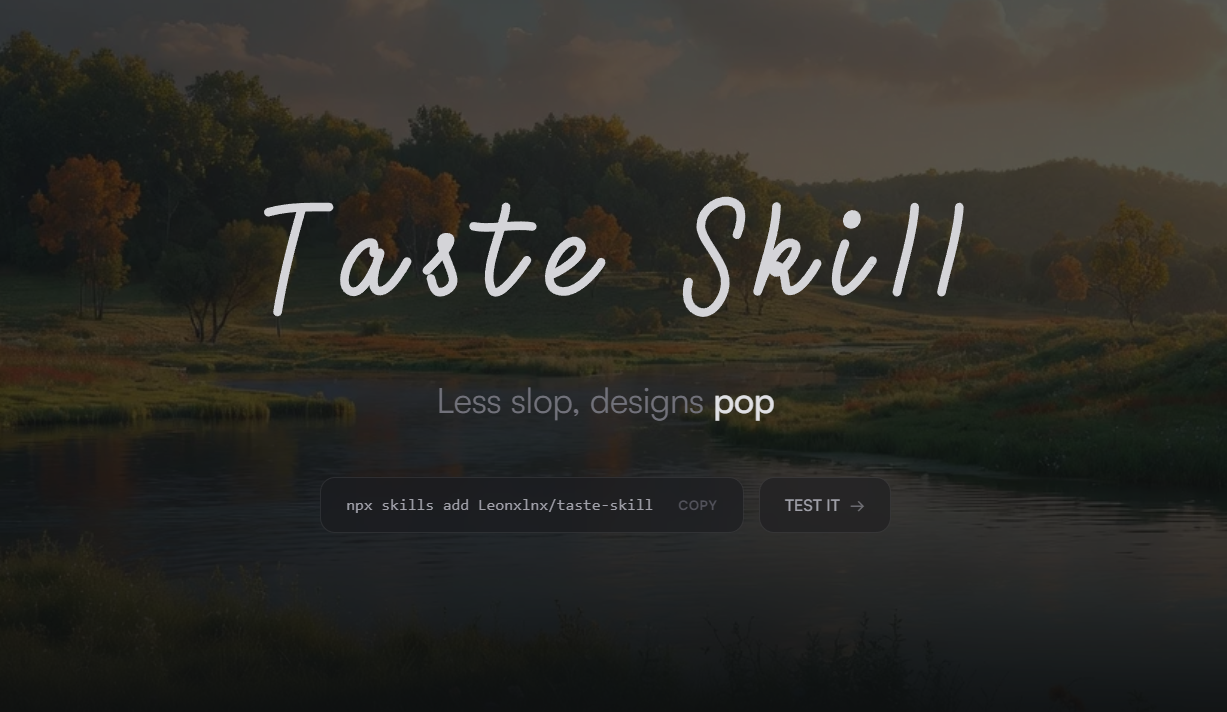 Taste Skill is an open-source frontend framework that teaches AI coding agents to generate premium, non-generic interfaces. Drop in a single SKILL.md to replace bland AI slop with dark, high-agency designs tuned at the level of shadows, motion, and layout.