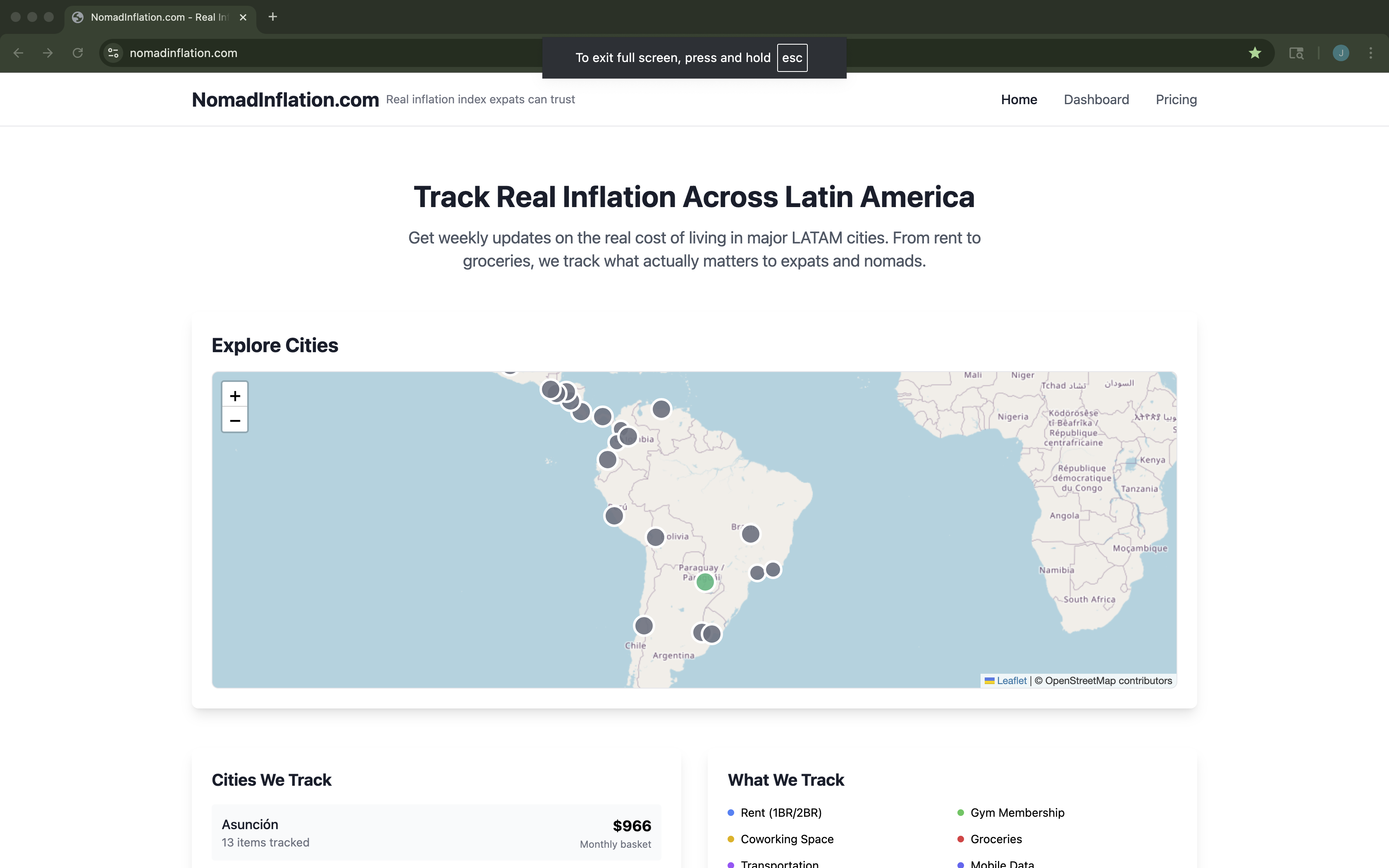 Tired of outdated Numbeo data? NomadInflation scrapes real prices weekly from Latin American sources. Track actual cost of living for digital nomads. Currently live: Asunción, Paraguay. More cities coming soon.