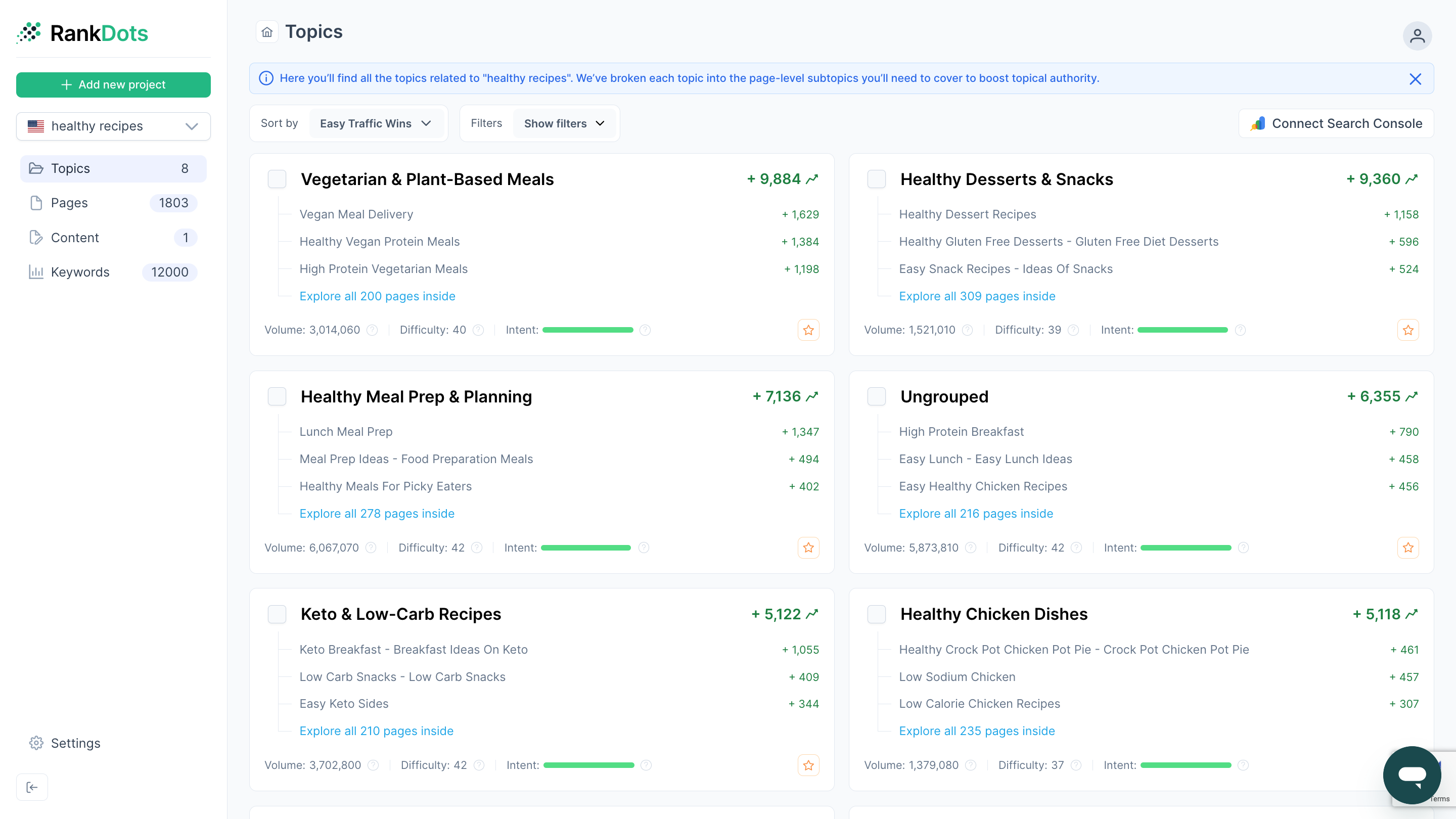 - RankDots analyzes what Google actually ranks for your target topics and shows you the keyword patterns that work